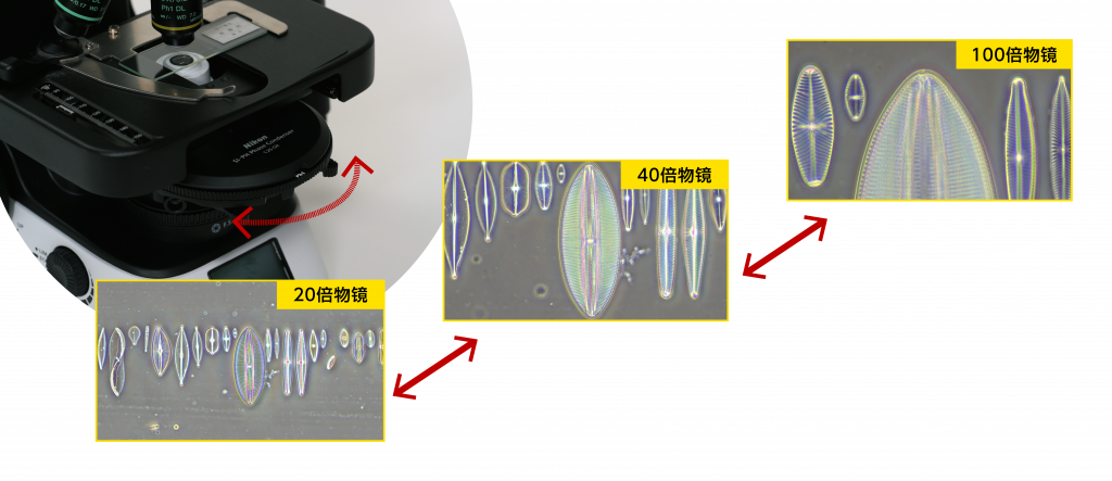 转动转盘,即可轻松地从低倍率观察过渡到高倍率观察