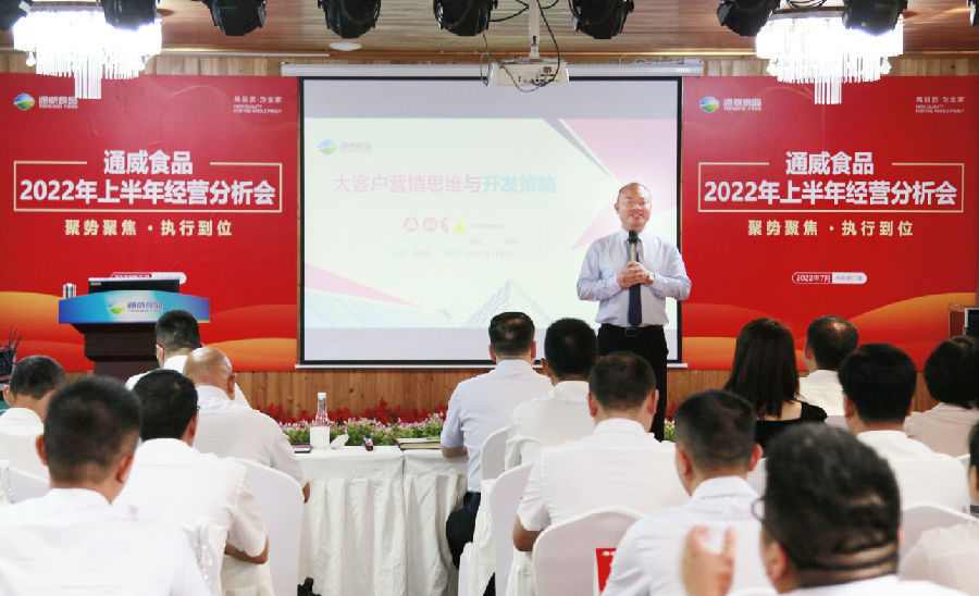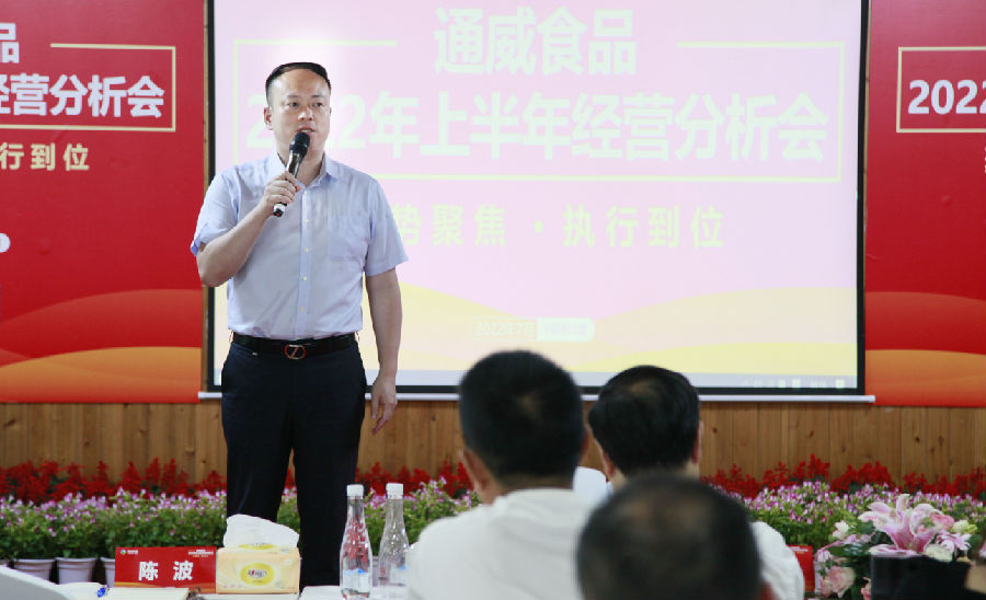 嚴董在總結講話時對通威食品2022年上半年取得的成績給予充分肯定,并向全體食品同仁的努力工作表示感謝,嚴董要求食品闆塊在未來較長時間都要堅持“三魚一蝦一平台一市場”的戰略定位不動搖,要努力把每條産品線做專做精、做強做大,立志成為各細分領域的龍頭。嚴董指出,通威食品各級管理幹部要認真分析後疫情時代的消費趨勢,推出符合消費趨勢的産品,我們要始終堅持高品質經營定位,做到規模化下的成本最優,要堅持客戶導向,滿足大連鎖大餐飲客戶的需求。嚴董強調,通威食品必須堅持食品安全底線,各公司進一步加強養殖基地建設,不斷加大研發投入,提高産品和公司的市場競争力。各公司要推行全員營銷,強化線上線下協同,提升系統管理能力,提高綜合競争力,利用通威股份全産業鍊資源做好主場營銷。最後,嚴董希望大家利用通威食品快速發展階段的激勵機會和分享機制,努力為通威食品的發展創造價值,從而實現個人價值的最大化。