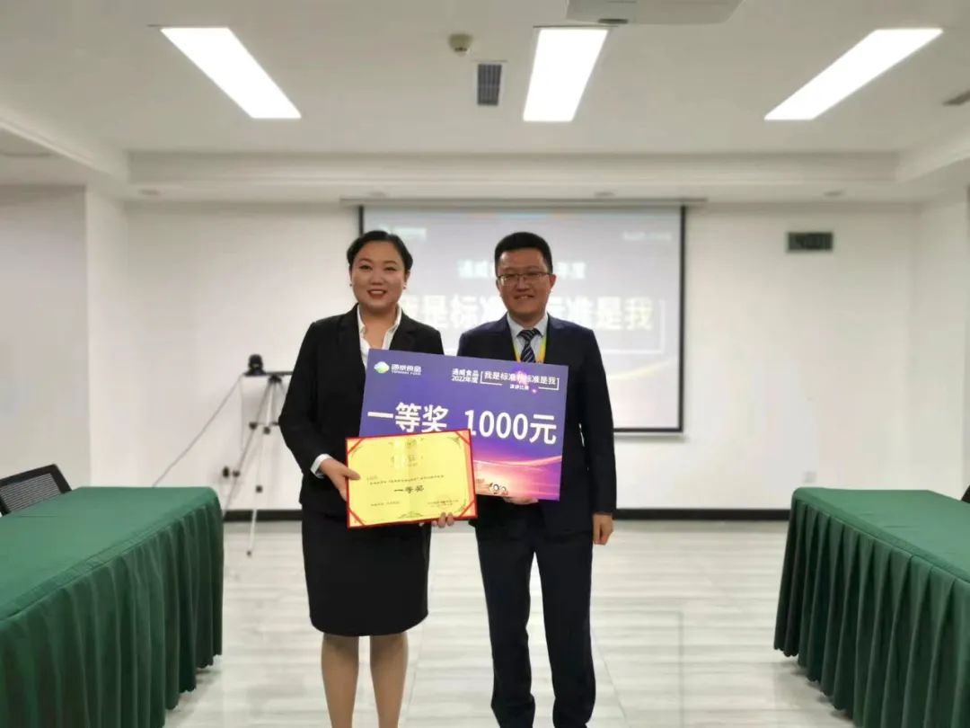 (通威食品人力資源總監黃勁松為一等獎選手頒獎)