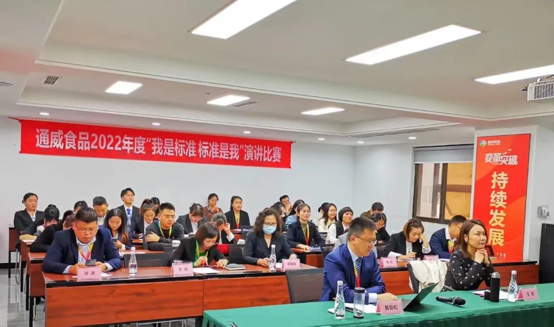 2022年,食品闆塊圍繞通威企業文化建設主旋律積極開展各項企業文化活動。曆時一個多月,經過各公司的激烈角逐,10月26日,13位優秀選手參加了食品闆塊“我是标準 标準是我”的演講比賽複賽,通威食品人力資源總監黃勁松、通威全農惠公司總經理王珊等出席活動并擔任評委。