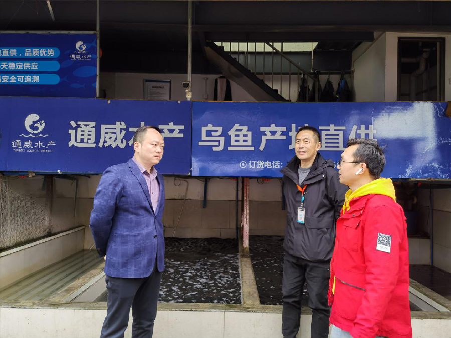 春節前夕,通威食品總裁陳波率食品管理團隊深入春源連鎖終端、伊藤、盒馬、SKP等通威魚銷售專櫃、通威魚園區和通威三聯水産市場,向堅守在民生保障一線的加盟商和通威食品同仁送上節日的問候和祝福。