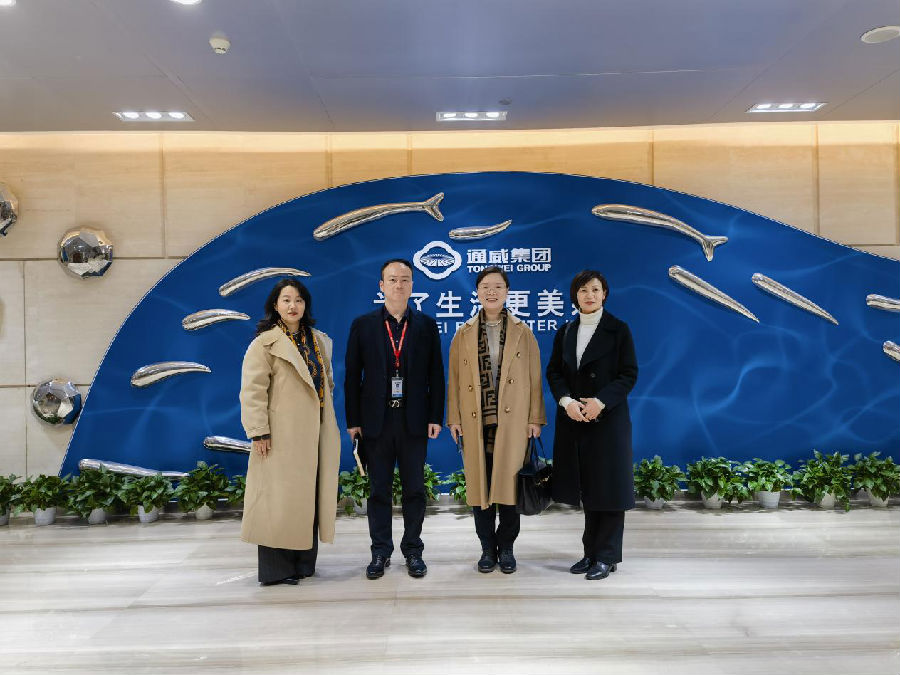 2月10日,方大炭素董事會秘書莊曉茹、華泰國際執行董事王娟赴通威考察交流。通威食品總裁陳波,通威(成都)水産食品總經理助理楊紅熱情接待。