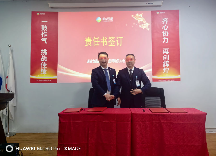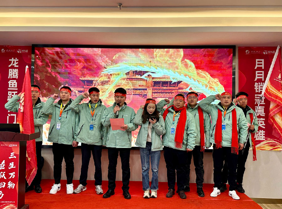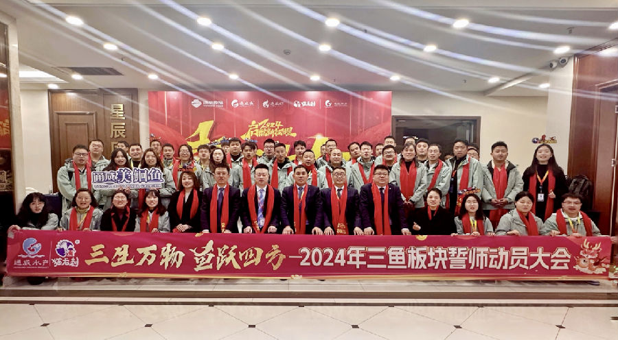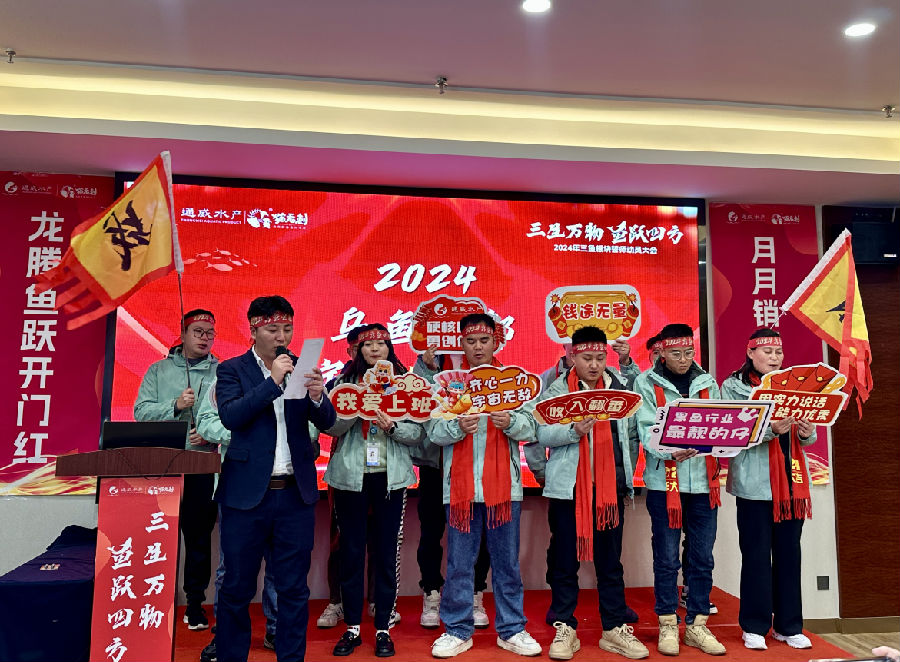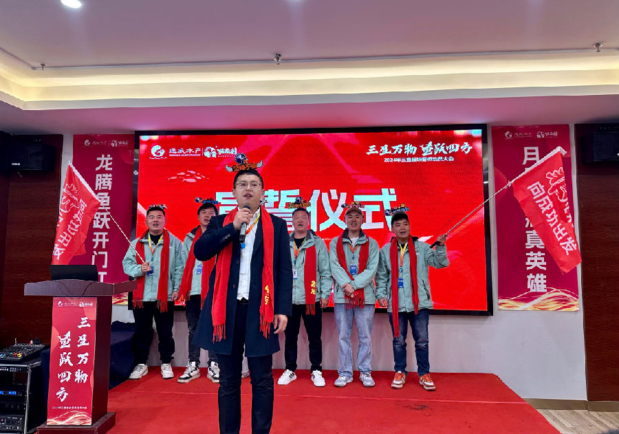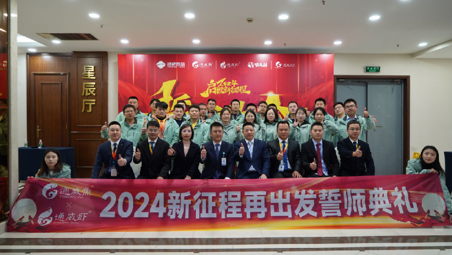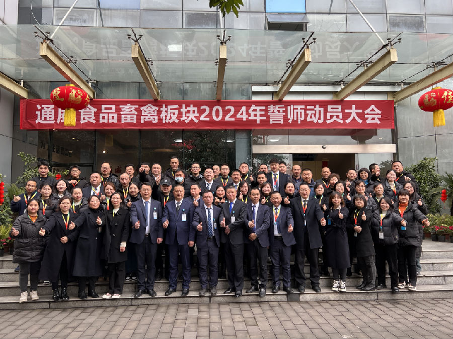 2024年新年開工第一周,通威食品各公司陸續召開誓師動員大會,通過部署2024年工作、簽訂軍令狀和團隊宣誓等形式,激勵全體員工以更加飽滿的熱情和更加高昂的鬥志,迎接新的挑戰和機遇。