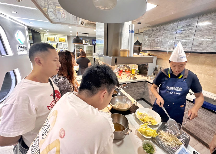 來到菜品研發室,雙方交流并實踐了通威盤龍清江、通威開背鮰魚兩款熱門産品的造型、烹饪方法,在色彩搭配、立體感與層次感、契合終端餐飲風格三個方面對齊了産品展示的必要技巧。