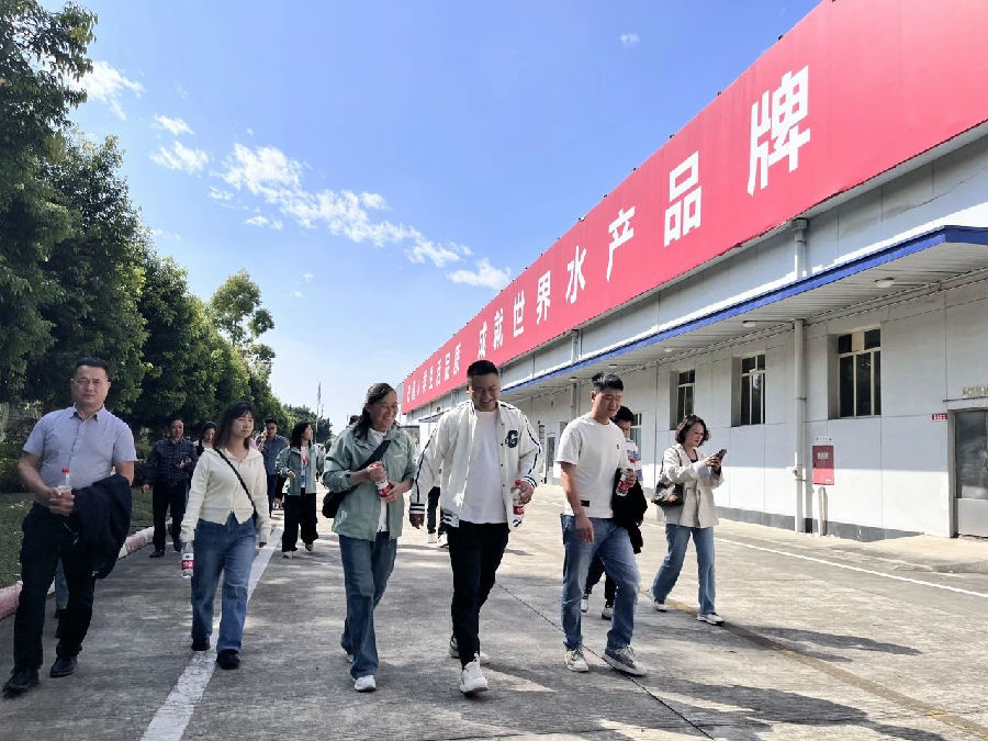 來賓一行首先深入通威(成都)水産有限公司和通威集團體驗中心,全流程、近距離見證了通威标杆産品——火鍋烏魚片的生産過程,品鑒了由通威黑魚全系列産品烹饪的多樣菜肴,深入了解了通威發端于水産、成長于農牧、跨越于新能源的發展曆程。