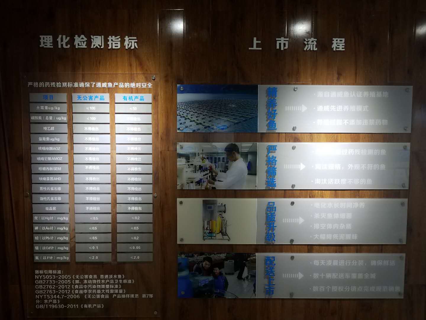 這裡還是通威水産産業鍊的智能展示終端,可以通過牆上的大屏幕就直接看到通威魚從養殖基地到物流再到終端的視頻監控影像、水質環境數據,更加簡單直接地了解到通威魚的安全放心與全産業鍊管控。