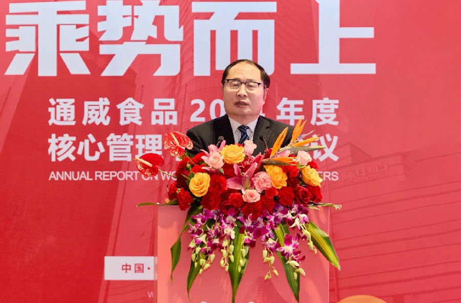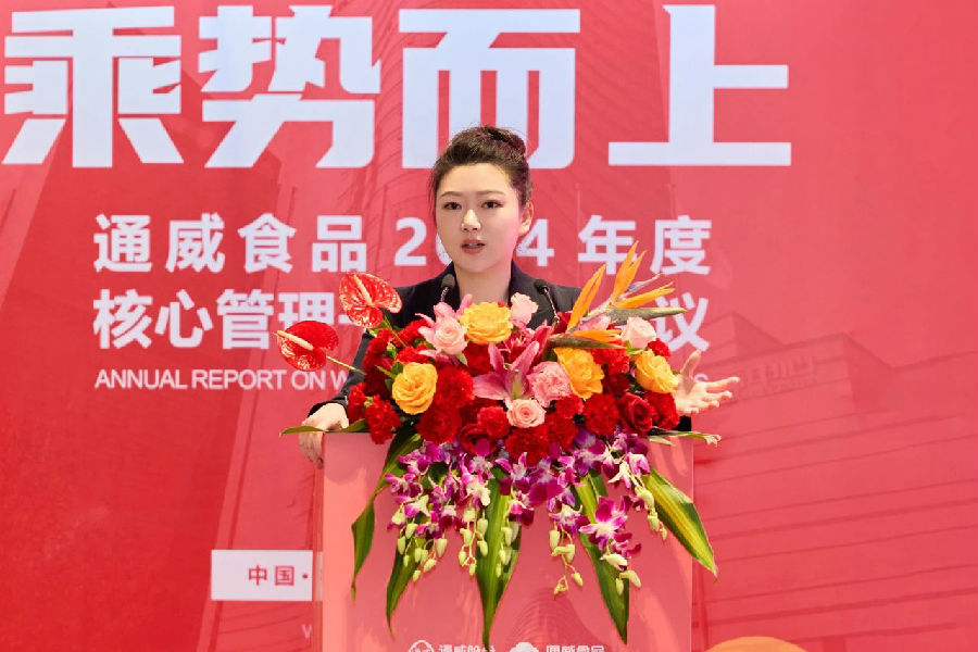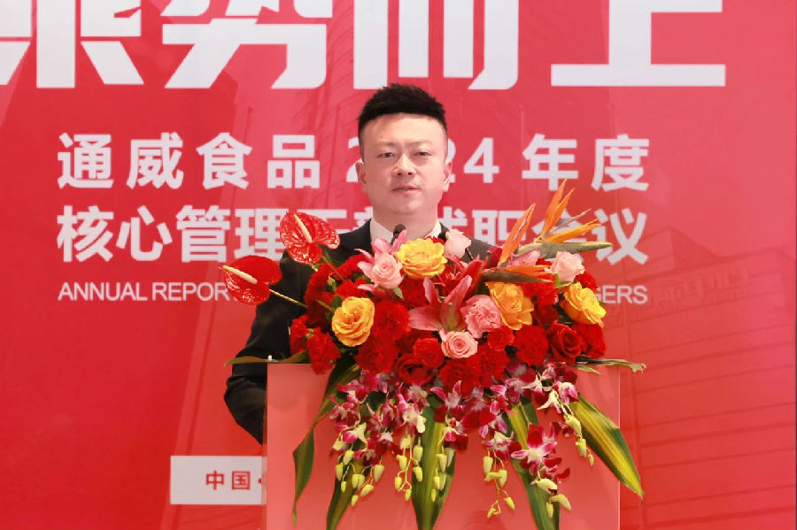 陳波總經理回顧了通威食品過去一年的經營發展情況,并指出,2024年是通威食品發展曆程中不平凡的一年。面對複雜多變的國内外形勢和行業的挑戰,通威食品在通威質量方針的指引下,全面啟動高品質定位策略,聚焦“三魚一蝦”水産主業,以堅定的信念和紮實的行動實現了突破式增長。充分證明了聚勢聚焦、高品質發展戰略的正确性和有效性。2025年是通威食品新一輪五年計劃的承上啟下、高品質定位全面深化的關鍵之年。通威食品将繼續堅持“安全為先、品質為本、客戶導向、持續發展”的經營方針,繼續堅持結果導向、業績導向和問題導向,強化團隊執行力。通過定位聚焦、研發創新、品牌傳播、根據地市場打造、大客戶營銷、工廠滿産滿銷等措施,推動通威食品業務的持續增長和良性發展,為下一個五年規劃實現跨越式增長開好局。