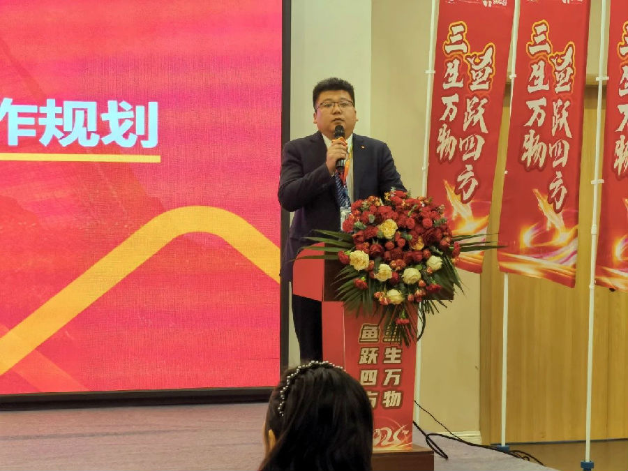 通威食品副總經理薛峰在會上作了重要的工作部署。他對各部門的工作進行了細緻點評,強調了公司融合的團隊建設、研發能力、市場服務和銷售策略的改進要求。薛總通過鄭州市場的供不應求和新興産業的快速發展等成功案例,鼓勵團隊保持産品質量和市場需求的正确方向。他着重指出,心态決定成敗,隻要團隊保持積極态度,嚴格落實好的方法和思路,三魚闆塊就能在2025年實現爆發性增長。