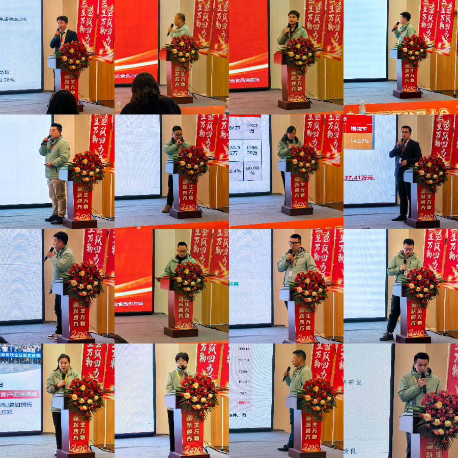 通威食品總經理陳波在講話中回顧了過去一年,面對市場波動和低谷,通過調整心态、工作方式和管理方法,實現了個人和團隊的成長。他強調隻有通過聚焦才能在競争激烈的市場中取得成功。陳總鼓勵大家設定目标、堅持努力、保持積極心态,要有勇氣挑戰自己,追求有意義的成就。