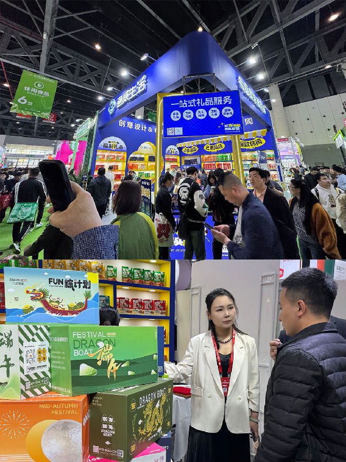 新品“端午禮盒”憑借幾何現代化風格創意策劃設計與“輕卡”、“流沙”、“非遺”等差異化新品,吸引衆多客商洽談;新品堅果系列憑借幹淨配方,品質原料與性價比優勢獲得客戶青睐;啵啵魚更是憑借其微波3分鐘、免洗碗的快捷性吸引了一大波年輕人關注,并獲得多家渠道客戶的強烈合作意向。