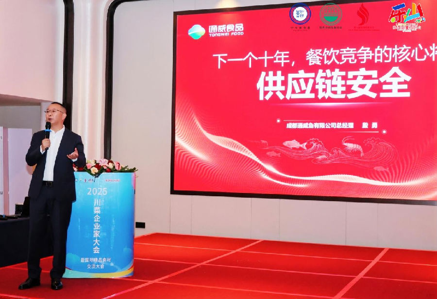 在大會重要環節——“2025川菜企業家大會暨餐飲供應鍊國際精品食材交流會”上,成都通威魚有限公司總經理殷勇發表主題演講,指出“下一個十年,餐飲競争的核心将是供應鍊安全”。他強調,在當前民意意識覺醒、食品安全知情權需求不斷升級的背景下,安全與透明已成為公衆關注食品企業的核心關鍵詞。殷總指出,水産加工品類近年來呈現爆發式增長,複合增速超過25%,遠高于整體食材加工行業,通威食品依托全産業鍊布局,正積極把握這一趨勢,為餐飲客戶提供安全、穩定、可溯源的食材解決方案。