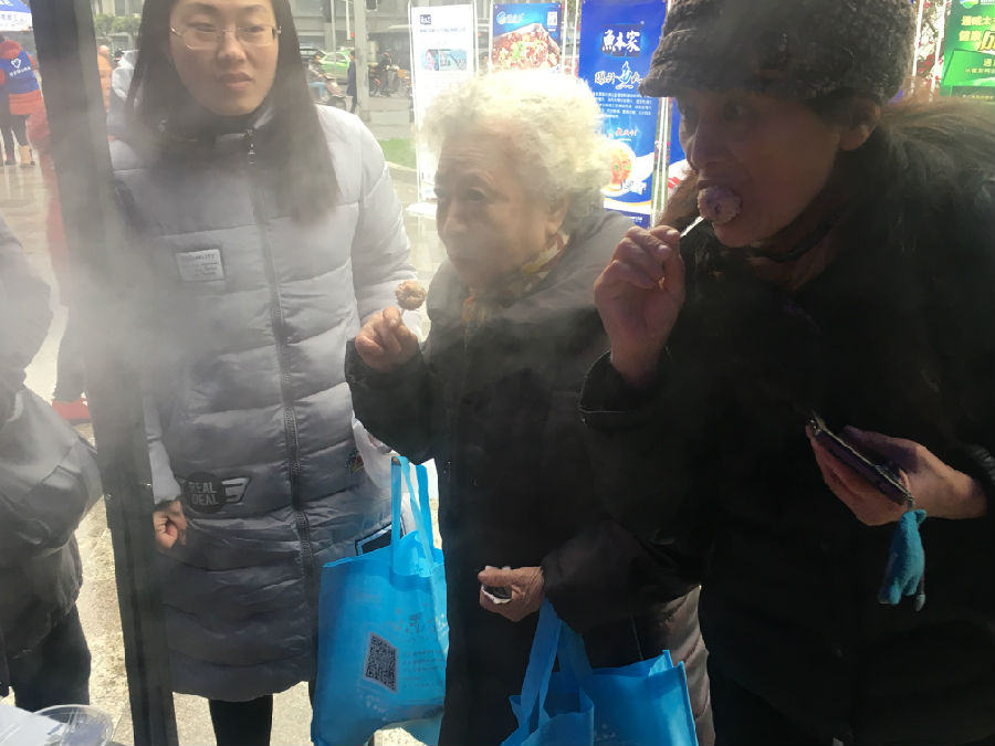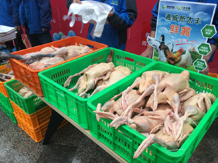 因臨近年末,新太豐公司的雞鴨産品受到了市民極大的青睐,通威春源公司的豬肉産品也非常受歡迎。通威(成都)三文魚公司推出了三文魚丸子和鲟魚丸子,展示不到兩小時就被市民搶購一空。