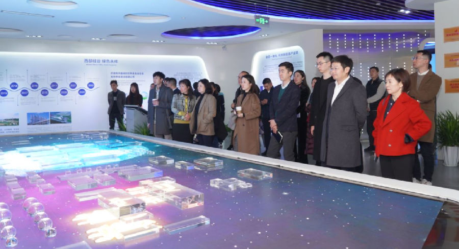 來賓一行首先參觀了通威體驗中心,詳細了解了通威39年來發展曆程及兩大核心主業發展現狀,對通威在綠色生态發展理念和近年來在農業和新能源領域取得的成績給予高度認可。