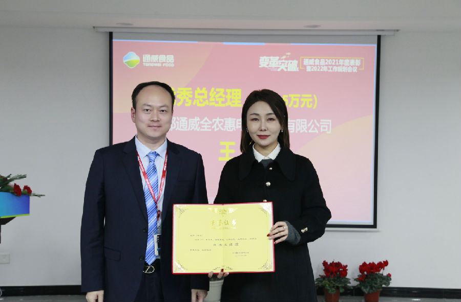 1月21日,通威食品召開2021年度表彰及2022年工作規劃會議。通威股份副董事長嚴虎、四川通威食品有限公司董事長兼總經理陳波、副總經理薛峰、總經理助理李天文及各公司總經理、中幹共計70餘人以“現場+視頻”的形式參加會議。