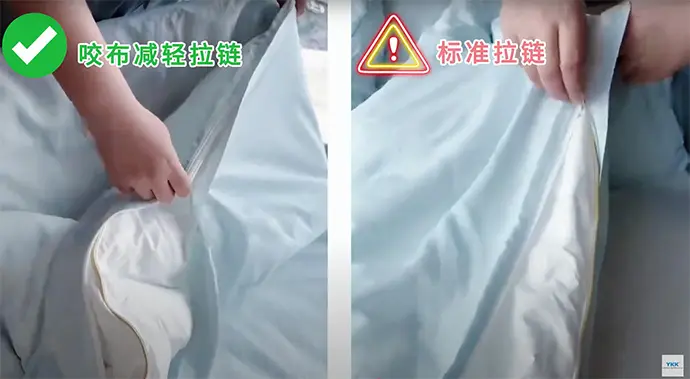 YKK株式会社(总部:东京都千代田区;代表取缔役社长:松嶋耕一,以下称为YKK)在中国开发并发售了一款“咬布减轻拉链”,这款拉链能够减少被罩和服装面料被拉链夹住的情况。