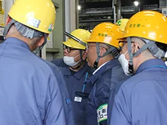 全員参加での安全衛生活動実施に向けた機運の醸成、および従業員一人ひとりの安全に対する意識の向上を目的として、社長や工場長、トップによる職場の安全巡視「Safety Patrol Day」を、YKKグループ全体の取り組みとして毎年実施しています。