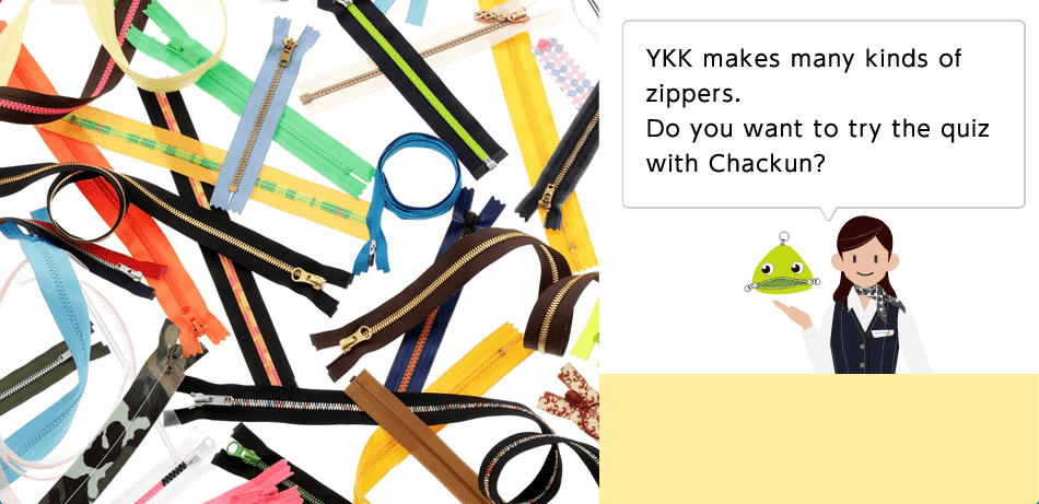 YKK makes many kinds of zippers. Do you want to try the quiz with Chackun?