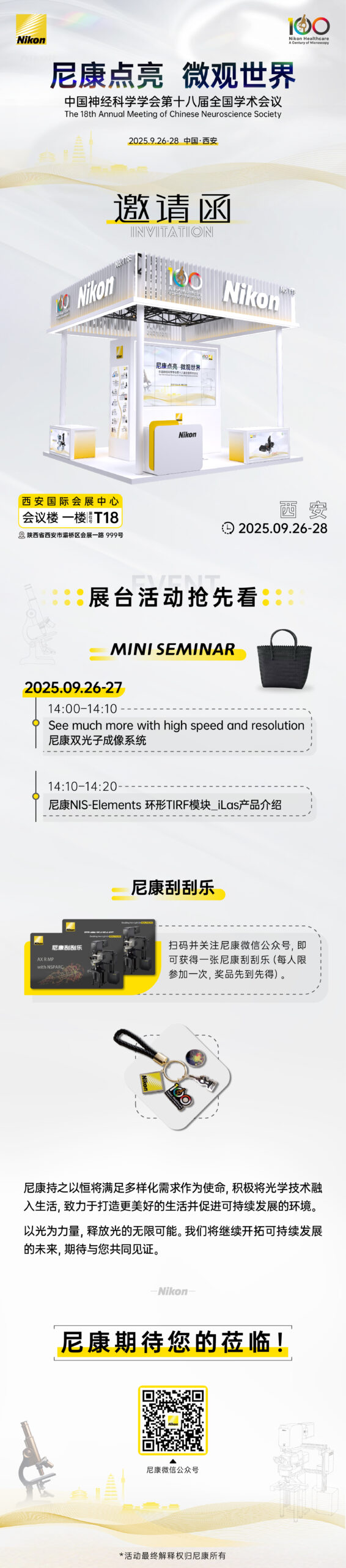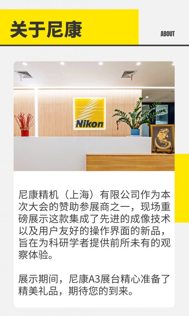 近年来,尼康致力于通过创新的技术和解决方案,推动生命科学的发展。会议期间,为感谢广大用户对尼康的支持,尼康在T1展台安排了有奖互动活动,诚邀您莅临交流。