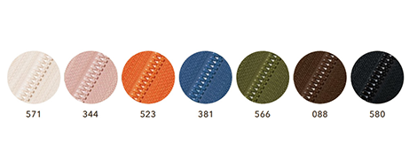 同サイズの金属ファスナーに比べ軽いのでスポーツ衣料にも多く採用されています。カラーバリエーションが豊富なのもビスロン® の特徴です。