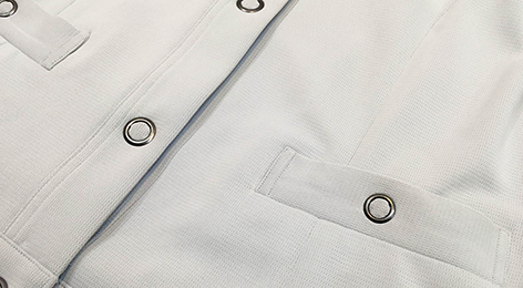 衣類の紐通しや通気口など広範囲に利用頂いております。業界でもいち早くセルフピアシング(先穴不要)に対応し、伸縮する生地にも取り付けることが可能です。※事前の生地チェックが必要です。