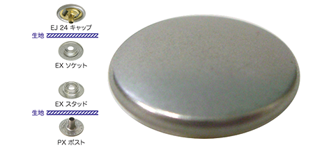 PERMEX® のEXソケットはリング状バネタイプのスナップで、しっかりとした着脱が可能。従来のタイプに比べ製品自体が薄く、スマートな外観が特長。前立てなどに使用されます。