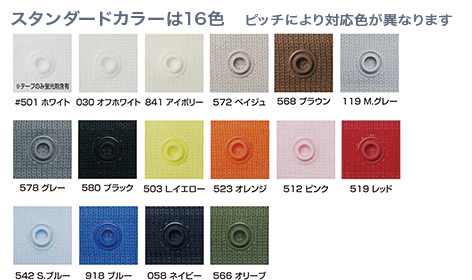 白・オフホワイト・アイボリー・ベージュ・黄・茶・オレンジ・ピンク・赤・空色・青・紺・深緑・薄いグレー・濃いグレー・黒の16色 |