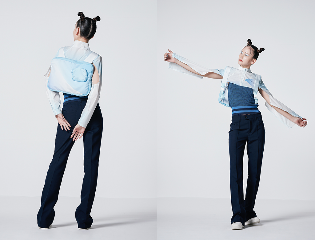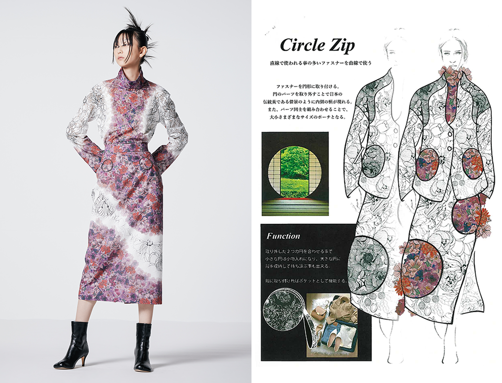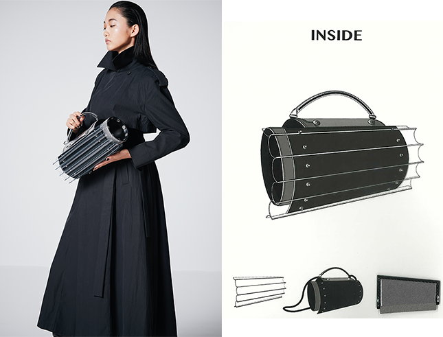 円をファスナーで繋ぐことで生まれる機能と造形を追求し、取り外すことで日本の伝統美である借景を表現。 ファスナーの新しい使い方を提案する。 |