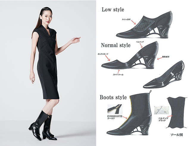 渡るものすべてを支えているアーチ橋。時代とともに姿形を変えても、昔からの役割は変わることはない。人間の足にもアーチが存在する。そのアーチは生活にも溶け込むように存在していることを実現した。付属パーツを付け替えることで様々なスタイルを楽しむことができる。 |
