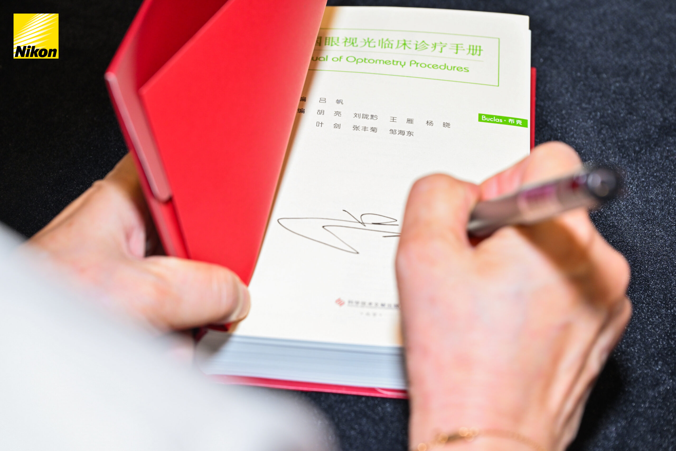 启动仪式后,吕帆教授的签名赠书仪式将现场氛围推向高潮。此次签赠的《中国眼视光临床诊疗手册》由吕帆教授携手国内多位眼视光专家共同编撰,凝结了团队多年临床与教学经验。该手册内容覆盖从基础理论到临床实践的全流程,强调规范与实用,结合图文形式,为眼视光从业人员提供了全面、系统的指导,对提升诊疗水平具有重要学术价值。签赠会人潮涌聚,吕帆教授一边签赠书籍,一边与大家热切交流互动,现场气氛热烈而温馨。